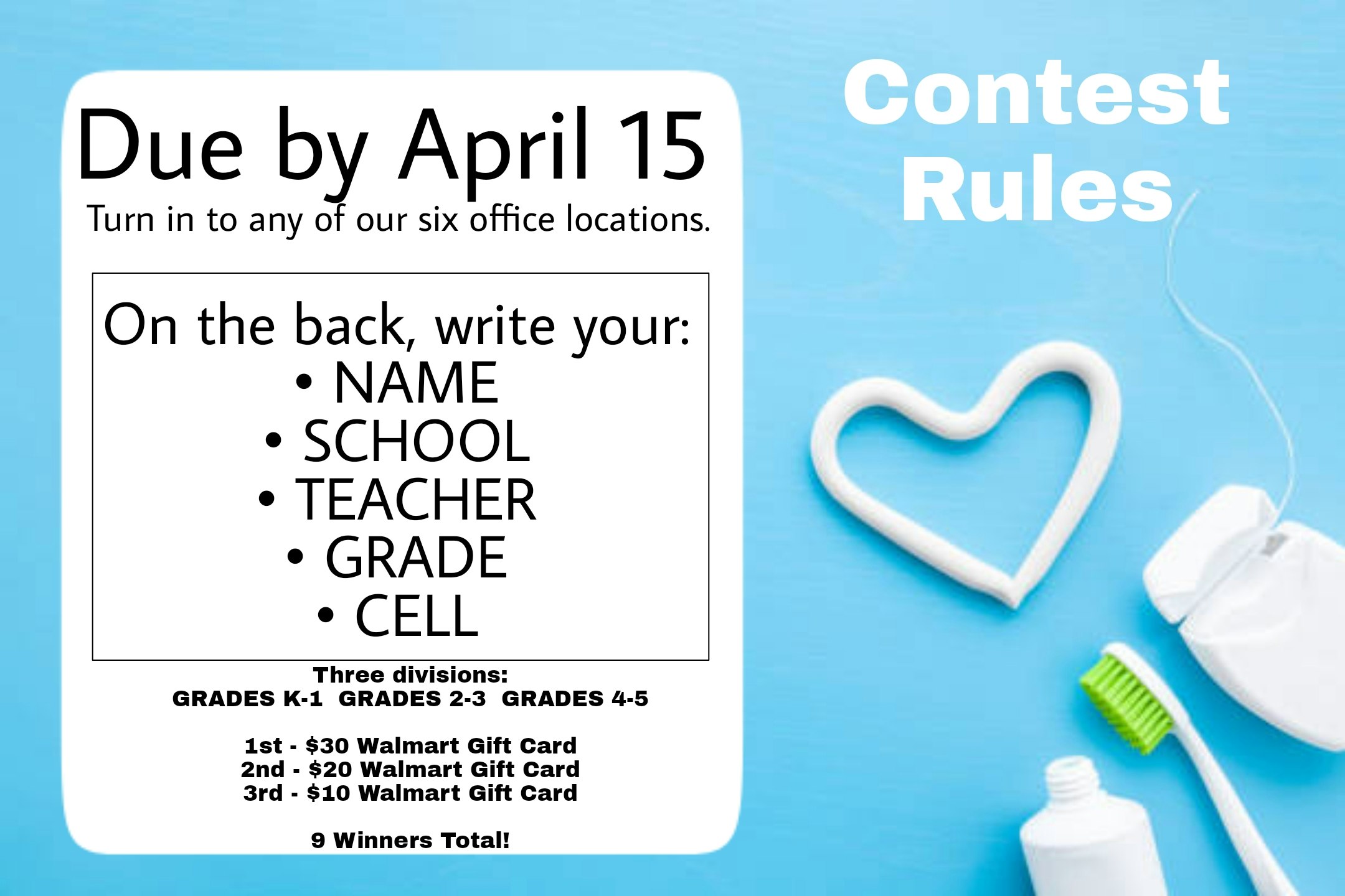 Every year, our office helps children celebrate orthodontic health through a coloring contest. It is open to all children in the areas we serve, you do not have to be a patient! See rules and details below.